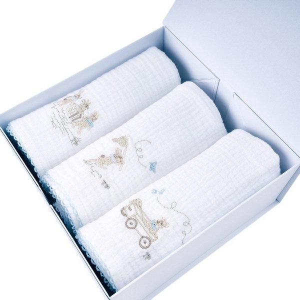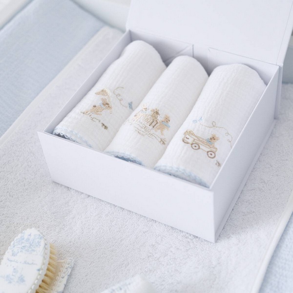 Théophile & Patachou Blue Garden Party 3 geborduurde tetra doek BP 60x60 + doos